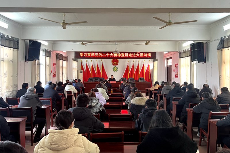 12月1日下午,县人大常委会主任成学斌到大溪河镇宣讲党的二十大精神。镇村干部、人大代表聆听宣讲。